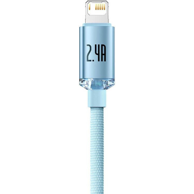 USB cable for iP Baseus Crystal Shine, 2.4A, 1.2m (blue)Now you can charge your devices in less time. The cable uses 2.4A for fast charging and allows you to transfer files at 480 Mbps. Plus, it has passed numerous durability tests, so you can be sure it will last you a long time.
