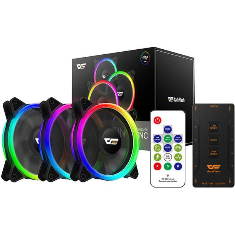 RGB Illuminated Fan Set 3in1 Darkflash DR12 ProHow to easily provide your computer with effective cooling and unique style? Just use the 120 mm DR12 Pro fans! The customisable, colourful LED backlighting will make your hardware look really fantastic. Easy to install and compatible with Asus Aura Sync, they are sure to meet the expectations of even the most demanding users. The set includes 3 fans and a practical remote control that allows convenient remote control of your devices.
