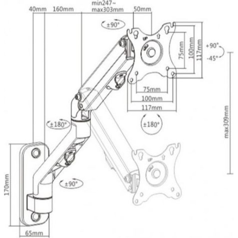 Gembird Adjustable wall display mounting arm, up to 27 inches/7 kg