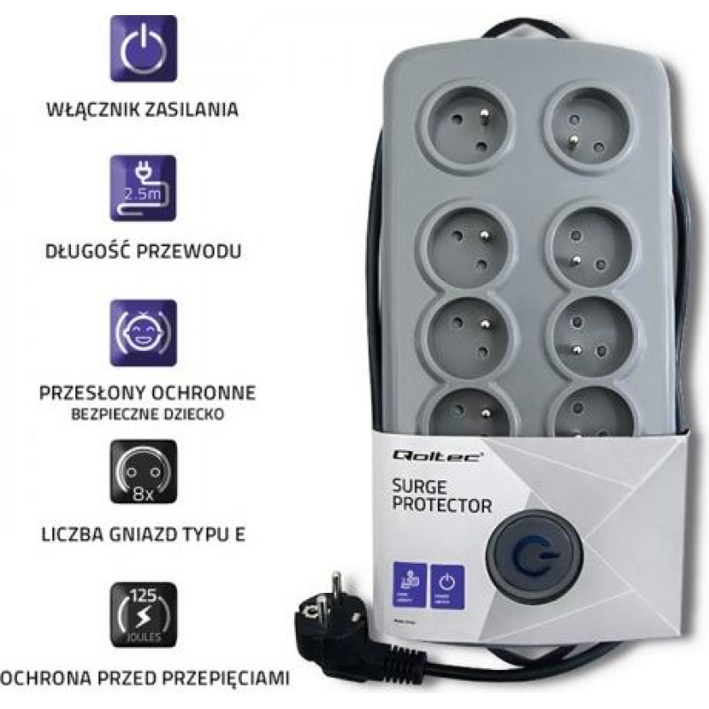 Qoltec Surge protector Quick Switch 8 sockets 2,5m gray