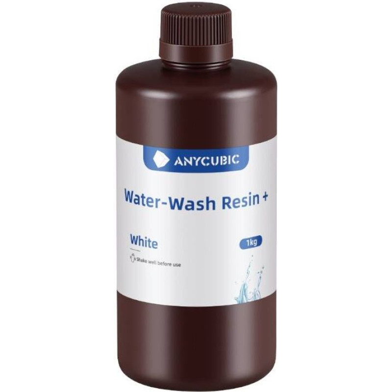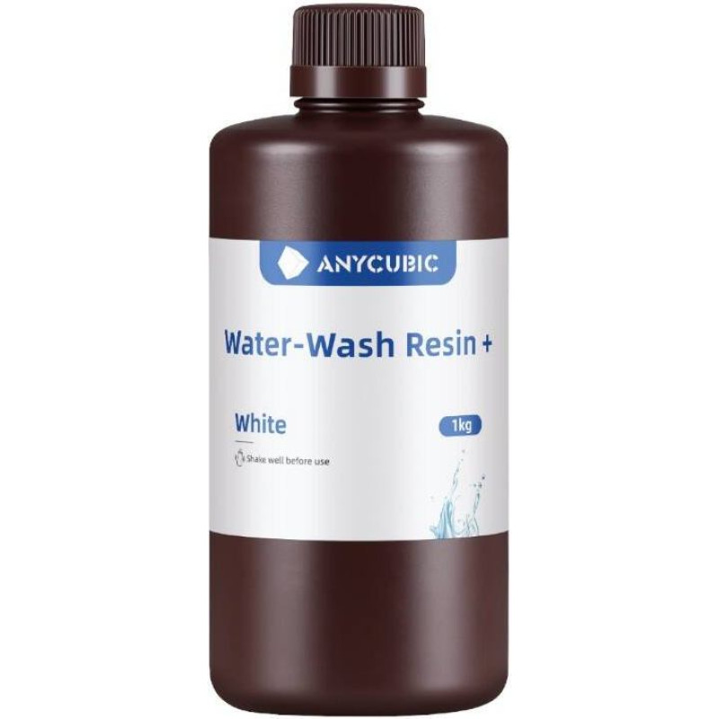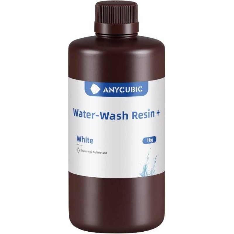 AnyCubic Water-Wash Resin + (White)AnyCubic Water-Wash Resin+ is a state-of-the-art resin that features high precision and minimal shrinkage during curing, allowing you to maintain detail in even the most complex models. Its unique formula provides strength and flexibility, making models resistant to cracking and mechanical damage. In addition, the prints can be stored for 3 years in natural conditions without the risk of cracking.