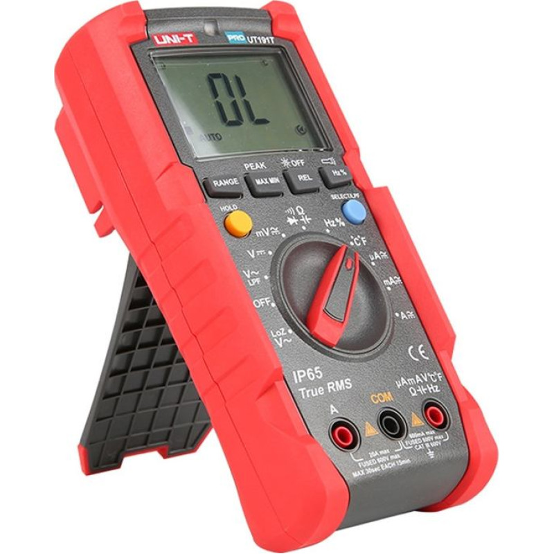 UNI-T UT191T professional digital multimeterThe UNI-T UT191T is a professional digital multimeter designed for use in harsh industrial environments. Equipped with True RMS function, the meter provides accurate measurements of voltage, current, resistance, capacitance, frequency and temperature. The UT191T offers a resolution of 6,000 counts and automatic or manual range selection. The meter's housing meets the IP65 standard and can withstand drops from heights of up to 2 meters, making it an ideal tool for use in harsh and changing conditions.