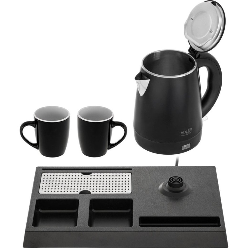 Adler AD 1387 Hotel kettle stainless steel 1 L + tray with cups black
