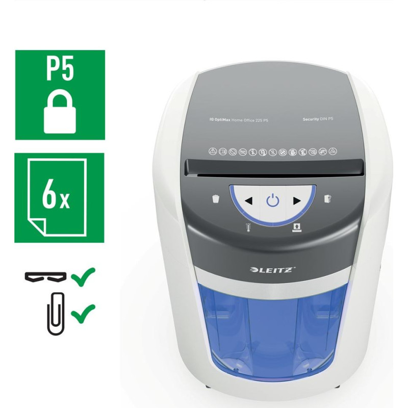 Leitz IQ OptiMax Home Office 225 Micro Cut Paper Shredder Security P5 15L - White