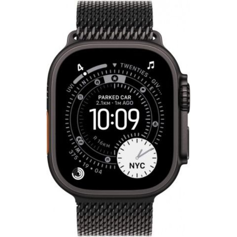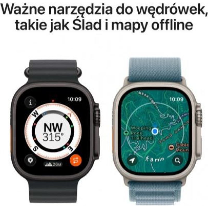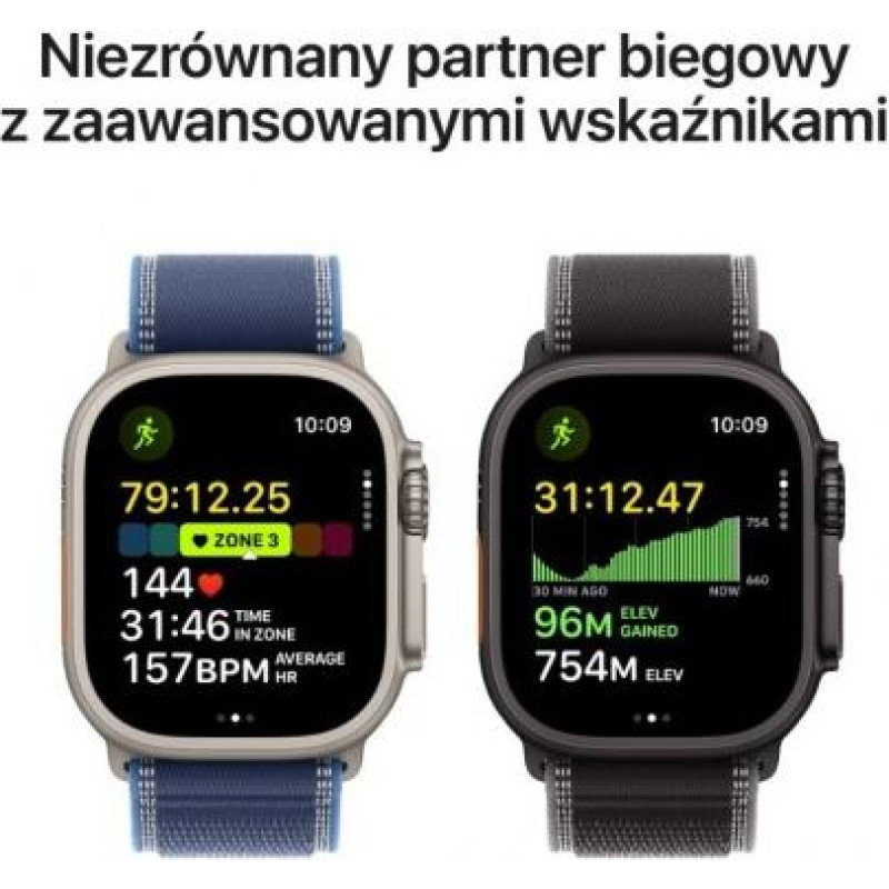Running Custom Workouts Programmable Workout Views Training Load / Effort Tracking Heart Rate Zones (configurable) Post-Workout Heart Rate VO Max Race Route Base Pace Precision start with Action Button Stride Length, Ground Contact Time, Cadence, Power, and Vertical Oscillation Multisport Training Hiking Compass with bearing, incline, elevation, and coordinates Custom Waypoints Automatically generated cellular-connected waypoints GPS data for Backtrack sessions Elevation Alerts Topographic maps of thousands of national and regional parks (U.S. only) Hundreds of curated hiking routes across all 63 U.S. national parks Siren Alarm Cycling Custom Workout Programmable Workout Views Training Load / Effort Tracking Average Speed, Elevation Gain, and Distance Bluetooth support for power meters Functional Threshold Power (when paired with a power meter) Live events on iPhone Heart Rate Zones (configurable) Cadence (rpm), Speed (km/h), Power (W), Power Zones (with power meter) Post-Workout Heart Rate Swimming Custom Swim Workouts (pool) with haptic alerts for interval timing Programmable Workout Views (pool swimming, open water swimming) Laps and automatic sets SWOLF Score Automatic Stroke Detection and Pool Length Counting (including kickboard swimming) Water Temperature Average Pace, Total Distance, Heart Rate, and Laps Diving Suitable for recreational diving up to 40 m Dive Computer App (available on the App Store) Automatic start at 1 m depth Time at current and maximum depth GPS data for dive entry and exit points Depth Gauge Water Temperature Sensor