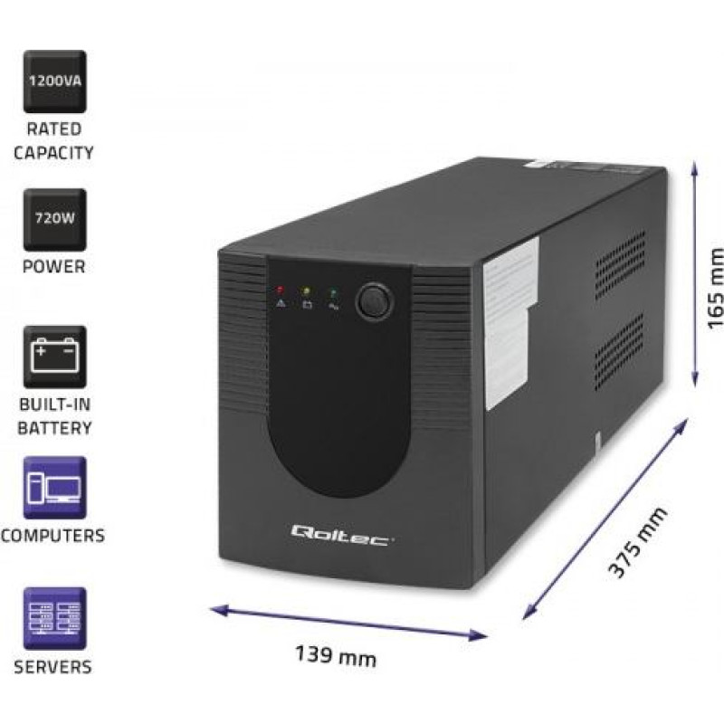 Qoltec Uninterruptible power supply, 1200VA, 720W