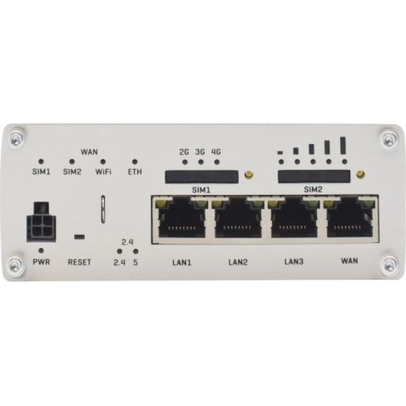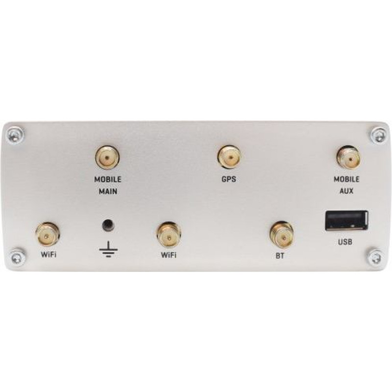 | SKU | KMTETLRUTX11000 | | Barcode | 4779027312378 | | Model | RUTX11 | | Type | GSM 3G/4G | | Data transmission | LTE | | Data transmission | UMTS | | Data transmission | Bluetooth | | UMTS network | 850 MHz | | UMTS network | 900 MHz | | UMTS network | 2100 MHz | | UMTS network | 1800 MHz | | LTE network | 2500 MHz | | LTE network | 2100 MHz | | LTE network | 2300 MHz | | LTE network | 900 MHz | | LTE network | 1500 MHz | | LTE network | 1800 MHz | | LTE network | 700 MHz | | LTE network | 800 MHz | | LTE network | 850 MHz | | LTE network | 2600 MHz | | Aero2 support | No | | Standards | 802.3u | | Standards | 802.3az | | Standards | 802.3 | | Standards | 802.11n | | Standards | 802.11ac | | Standards | 802.11e | | Standards | 802.11r | | Standards | 802.11b | | Standards | 802.11g | | Operating frequency | 2,4 GHz | | Operating frequency | 5 GHz | | Number of antennas | Six connectors | | Antenna | Detachable external | | Security | Authentication: Pre-shared key, digital certificates, X.509 certificates Firewall: Pre-configured firewall rules can be enabled via WebUI, unlimited firewall configuration via CLI; DMZ; NAT; NAT-T Attack prevention: DDOS prevention (SYN flood protection, SSH attack prevention, HTTP/HTTPS attack prevention), port scan prevention (SYN-FIN, SYN-RST, X-mas, NULL flags, FIN scan attacks) VLAN: Port and tag based VLAN separation Mobile quota control: Custom data limits for both SIM cards WEB filter: Blacklist for blocking out unwanted websites, Whitelist for specifying allowed sites only Access control: Flexible access control of TCP, UDP, ICMP packets, MAC address filter WiFi security: WPA3-EAP, WPA3-SAE, WPA2-Enterprise-PEAP, WPA2-PSK, WEP; AES-CCMP, TKIP, Auto Cipher modes, client separation | | Management, monitoring, configuration | Mobile features: Multiple PDN, Auto APN, Band lock, SIM switch, Operator black/white list, Data/SMS limits Network: Failover (Network backup), VLAN, QoS, Load Balancing Routing: Static routes, Dynamic routes (BGP, OSPFv2, RIPv1/v2, EIGRP, NHRP), Routing rules VPN and tunneling: OpenVPN, IPsec, GRE, PPTP, L2TP, Stunnel, DMVPN, SSTP, WireGuard, ZeroTier Cloud solutions: RMS, FOTA, Telenor, Azure IoT Hub, Cloud of Things, Cumulocity, ThingWorx Hotspot: External/Internal Radius, SMS OTP, MAC authentication, Walled Garden NTP: NTP Server, NTP Client, Sync with: External NTP server, GNSS, Mobile operator GNSS: NMEA forwarding, AVL, Geofencing | | Card reader | None | | I/O ports | 1 x USB 2.0 | | I/O ports | 2 x SIM card slot | | I/O ports | 4 x 10/100/1000 Mbit/s | | SIM card | Mini | | Power supply | 4pin connector, 9-50 VDC | | Software | RutOS (OpenWrt based Linux OS) | | Environment requirements | Operating temperature: -40 C to 75 C Humidity during operation: 10% to 90% non-condensing | | Accessories included | RUTX11 router 18W power supply 2 x LTE antenna (rotatable, SMA male) 2 x WiFi antennas (swivel, RP-SMA male) GNSS antenna (glued, SMA male, 3 m cable) Bluetooth antenna (magnetic mounting, RP-SMA male, 1.5 m cable) Ethernet cable (1.5 m) SIM Adapter kit Quick Start Guide RMS leaflet | | Color | Aluminium | | Weight | 456 | | Dimensions | 115 x 44 x 95 mm | | Designation | CE+WEEE |