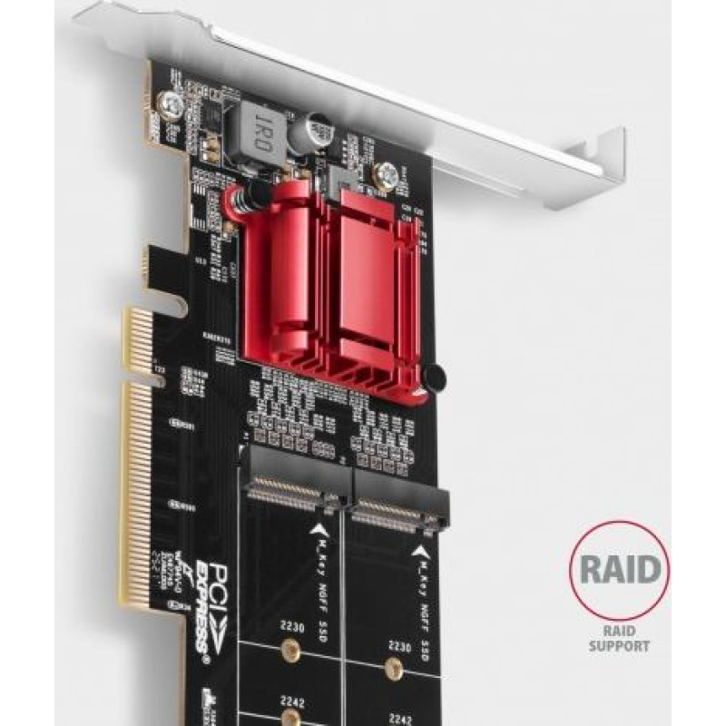 PCI-Express adapter with standard plug Low profile herring Mounting material Printed installation guide Packed in a cardboard box