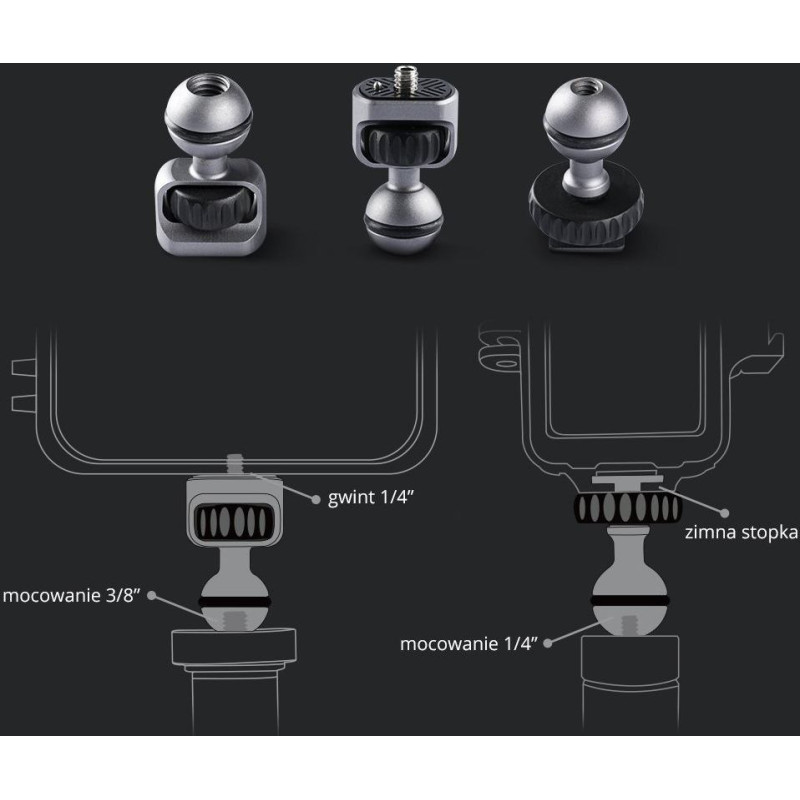 PGYTECH Magic Arm accessory mount (P-CG-009) for cameras / gimbalsMagic Arm is a device that allows you to mount additional accessories to your camera. The heads on each side of the device are designed so that they are able to rotate 360 degrees, so depending on your needs, you can position the mounted accessory at any angle. The device can be used to operate additional accessories such as lighting, monitor or microphone. ![]() Alai's flexible positioning structureThe user, depending on the type of equipment he has, can mount the bracket with an Alai input, thus significantly improving the quality of the mount, or forgo this option if he does not have a proper hole and mount the accessory with a ¼ inch input. ![]() Constructed of aluminumThe device is constructed from metal and silicone. The whole creates a sleek design that will fit in any pocket. It is both sturdy and flexible. It not only meets the durability requirements, but also provides a stylish look. The device has the ability to install any three modules in any configuration. ![]()