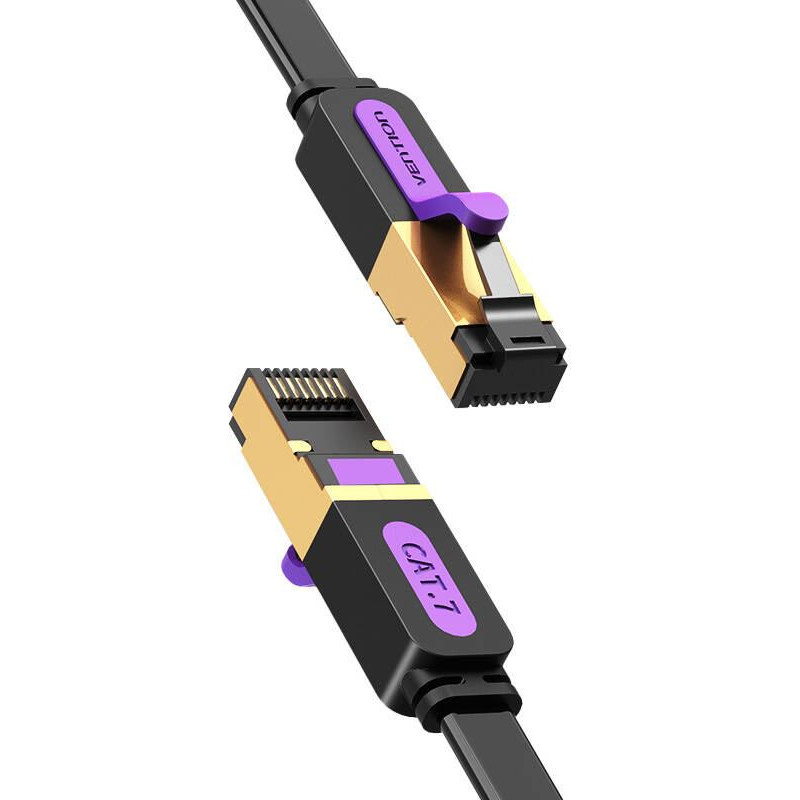 Flat UTP Cat 7 Network Cable Vention ICABG 1.5mNow you can enjoy playing games, downloading files, working, or watching movies with ease. The Vention network cable provides transfer speeds of up to 10 Gbps, so you don't have to worry about delays or other signal problems. Copper contacts and aluminum foil shielding ensure fast and stable transmission, while the flat design and thickness of just 2.5 mm make cable installation easy. You can easily route it under doors or along walls! The cable also stands out with its wide compatibility – it works perfectly with computers, laptops, routers, and more.