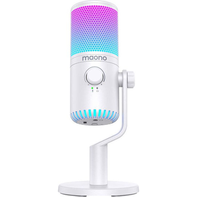 Maono DM30RGB Gaming Microphone (White)The Maono DM30RGB is an elegant, white microphone designed to deliver unparalleled sound quality while maintaining a stylish gaming character. With advanced sound and lighting customization options, a convenient voice and volume control knob, integrated equalizer settings, and plug-and-play simplicity, the DM30RGB is the perfect choice for gaming enthusiasts and content creators. Functionality and style that translate into better gaming and online communication experiences.