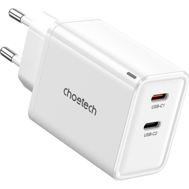 Choetech PD6013, GaN, 2x USB-C, PD65W (white) network charger.Choetech PD6013 network charger is a device that combines high charging power with advanced GaN technology. With two USB-C ports and a charging power of up to 65 watts, it enables fast charging of laptops, smartphones, tablets and other devices. GaN technology reduces the size of the charger while increasing its efficiency.