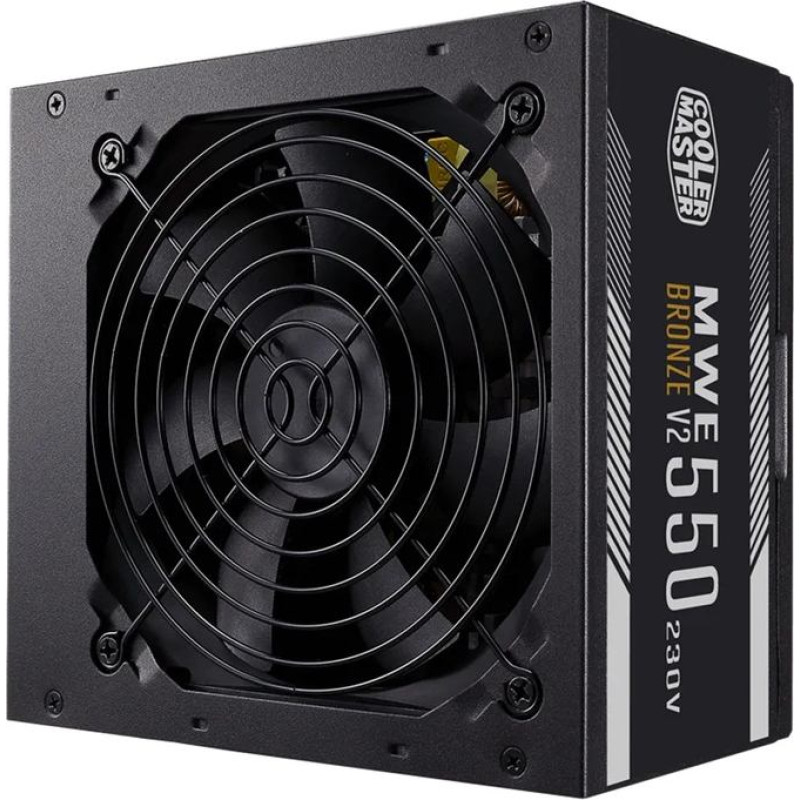 Cooler Master MWE BRONZE V2 230V 550W power supply unit.The Cooler Master MWE Bronze V2 550W power supply is a solid solution for users looking for performance, reliability and quiet operation at an affordable price. The unit meets the ATX 2.52 standard and offers active PFC, which translates into stable voltages and higher energy efficiency. The whole unit is enclosed in a compact case with flat cables for easy installation and organization inside the case.