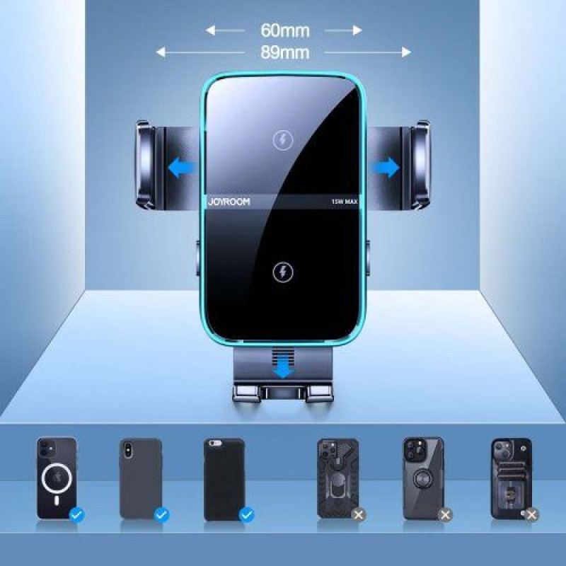 One-hand operation The holder does not require the hassle of adjusting the accessory to the size of the phone. Just put the device on it, and the electric jaws will tighten themselves, fixing the phone in the holder. It doesn't get any easier! No scratches, no visibility issues The holder is attached to the dashboard, so it does not limit visibility in any way. In addition, it has rubber overlays on the jaws for a solid installation without scratching the equipment. Instant charging on the go Thanks to the built-in 15 W charger, you can quickly charge your equipment while driving. All without unnecessary cables and forced resignation from using the device. We recommend connecting to a car charger that supports fast charging. Stability and security The triangular design of the accessory guarantees the stability and safety of the phone even on the most uneven roads. Built-in charging protection Against overcharge, discharge, overvoltage, overheating, overcurrent, short circuits, electromagnetic field. Complete protection for both the holder and the phone. | ||