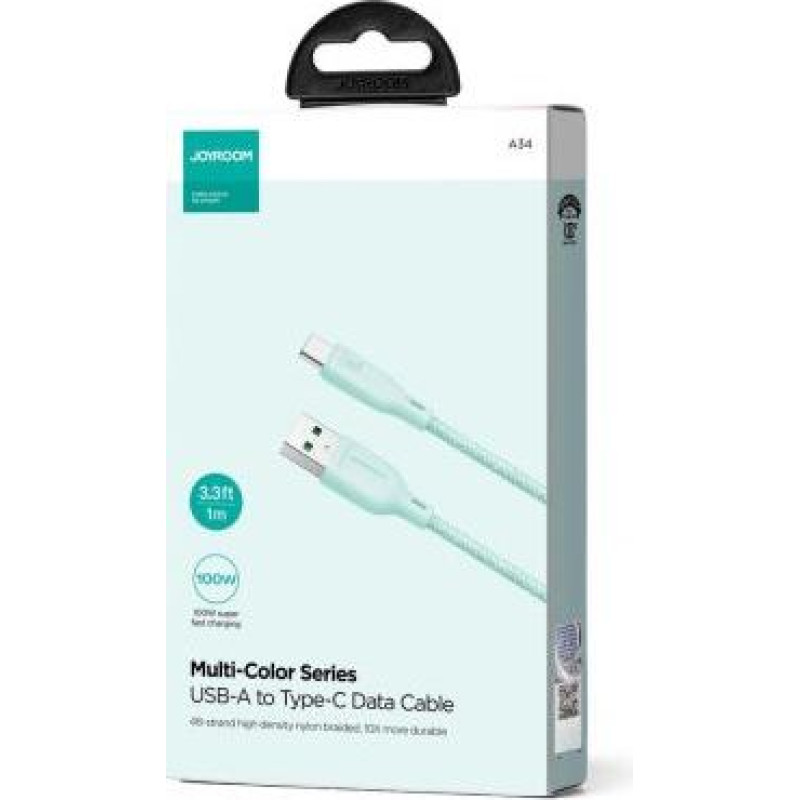 The Joyroom Multi-Color Series S-A34 cable is a guarantee of fast charging, exceptional durability and reliability. It not only charges, but also transfers data at an incredible speed of 480 Mbps. Now you can transfer large files in a few seconds. You also don't have to worry about frequent replacements - the Joyroom Multi-Color Series S-A34 will survive over 10,000 bends. It is abrasion-resistant and very durable. This is a cable you can rely on. Choose it and experience unparalleled quality. Key benefits of the Joyroom Multi-Color Series S-A34 USB-A / USB-C cable: