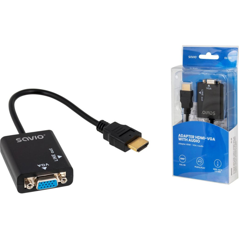 Savio CL-23 video cable adapter 0.5 m VGA (D-Sub) HDMI Type A (Standard) Black